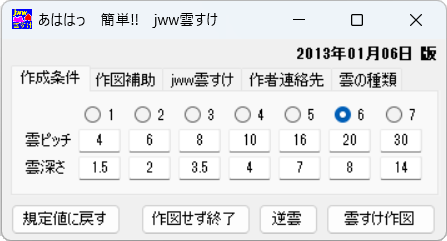 | あははっ 簡単!! jww雲すけ ここをクリックして下さい (Vectorのページへ飛びます) ![]() | あははっ 簡単!! 『jww雲すけ』は、jw_cad for windows(以下 jww)の外部変形です。 図面変更個所などを明示する時の雲マークを jwwに簡単に作図することを目標に開発しました。 使用方法はいたって簡単です。 (1).雲のサイズが可変 7種類事前登録(変更可能)、選択可能。 (2).雲の形状 ふくらんだ(凸)雲、へこんだ(凹)雲が選択可能。 (3).雲の終端 開いた雲、閉じた雲が選択可能。 (4).配置ポイント 前回の配置ポイントが、そのまま利用可能です。 簡単な取扱い説明も、PDF形式で付けています。 楽に仕事をしたい皆様、御利用下さい。 ダウンロード数 67,248 を誇る ベストセラー作品です。 (2025_1202 現在) |