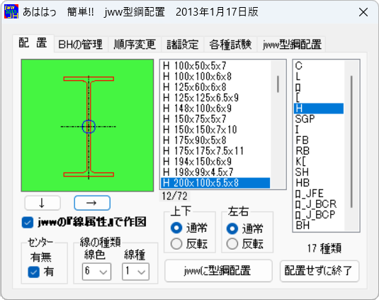 | あははっ 簡単!! jww型鋼配置 ここをクリックして下さい (Vectorのページへ飛びます) ![]() | あははっ 簡単!! 『jww_型鋼配置』は jw_cad for windows(以下 jww)の外部変形です。 汎用性のある一般型鋼の断面をjwwに簡単に作図することを目標に開発しました。 使用方法はいたって簡単です。 (1).jww上で、配置するポイントを指示。 (2).目視でリストから、配置する型鋼の断面(種類)、サイズを選択します。 (3).配置基準点を選択します。 (4).配置ボタンを押します。 以上の操作で、型鋼が配置できます。 簡単な取扱い説明も、PDF形式で付けています。 楽に仕事をしたい皆様、御利用下さい。 ダウンロード数 15,810回 (2025_1202 現在) |